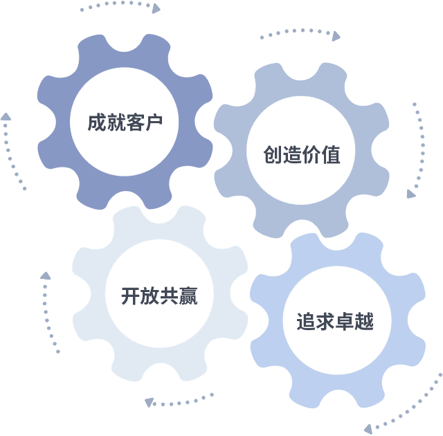 成就客户是一切决策的出发点,,,,创造价值是衡量所有工作的标准,,,追求卓越是利来国际做事做人的态度,,,,开放共赢是利来国际的格局也是最终的结果。。。。价值观的齿轮环环相扣,,推动着组织里的每个人不断向前。。